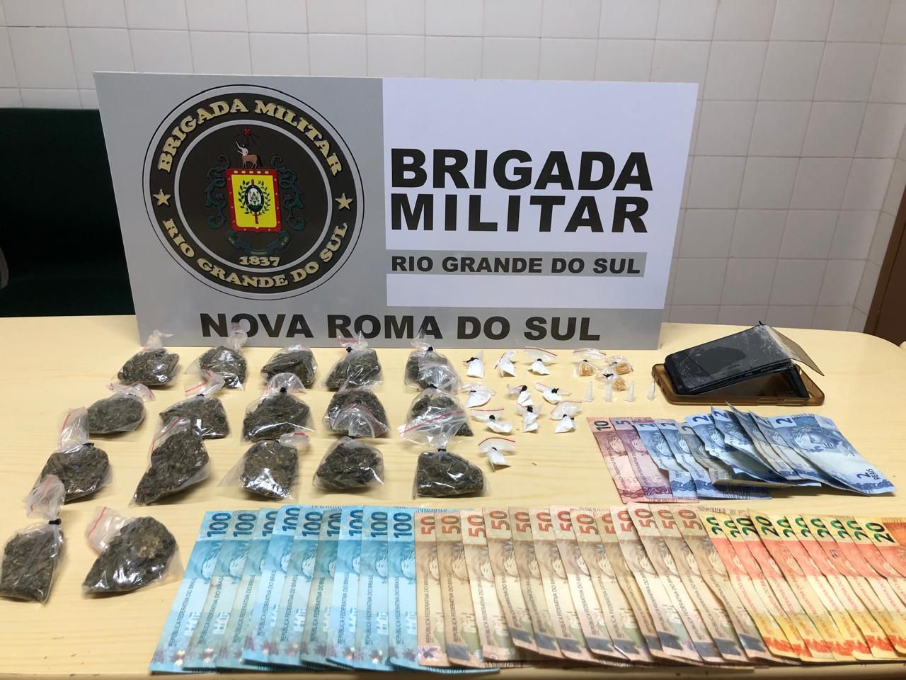 Na madrugada de hoje 16/02 às 02h a Brigada Militar através do 36° Batalhão de Polícia Militar, prendeu um homem de 32 anos e uma mulher de 22 anos, por tráfico de entorpecentes, no Centro de Nova Roma do Sul.
