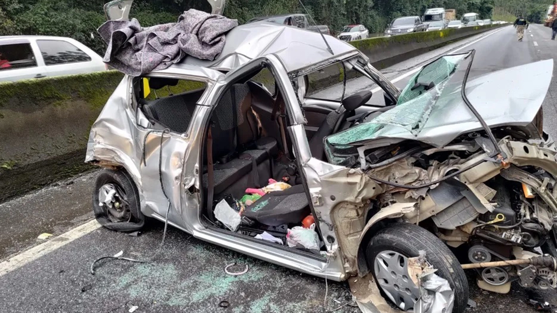 O carro em que a criança estava ficou destruído, mas segundo a Polícia Rodoviária Federal, a criança escapou de ferimentos graves pois estava presa na cadeirinha. A mulher que estava no banco dianteiro sofreu ferimentos.