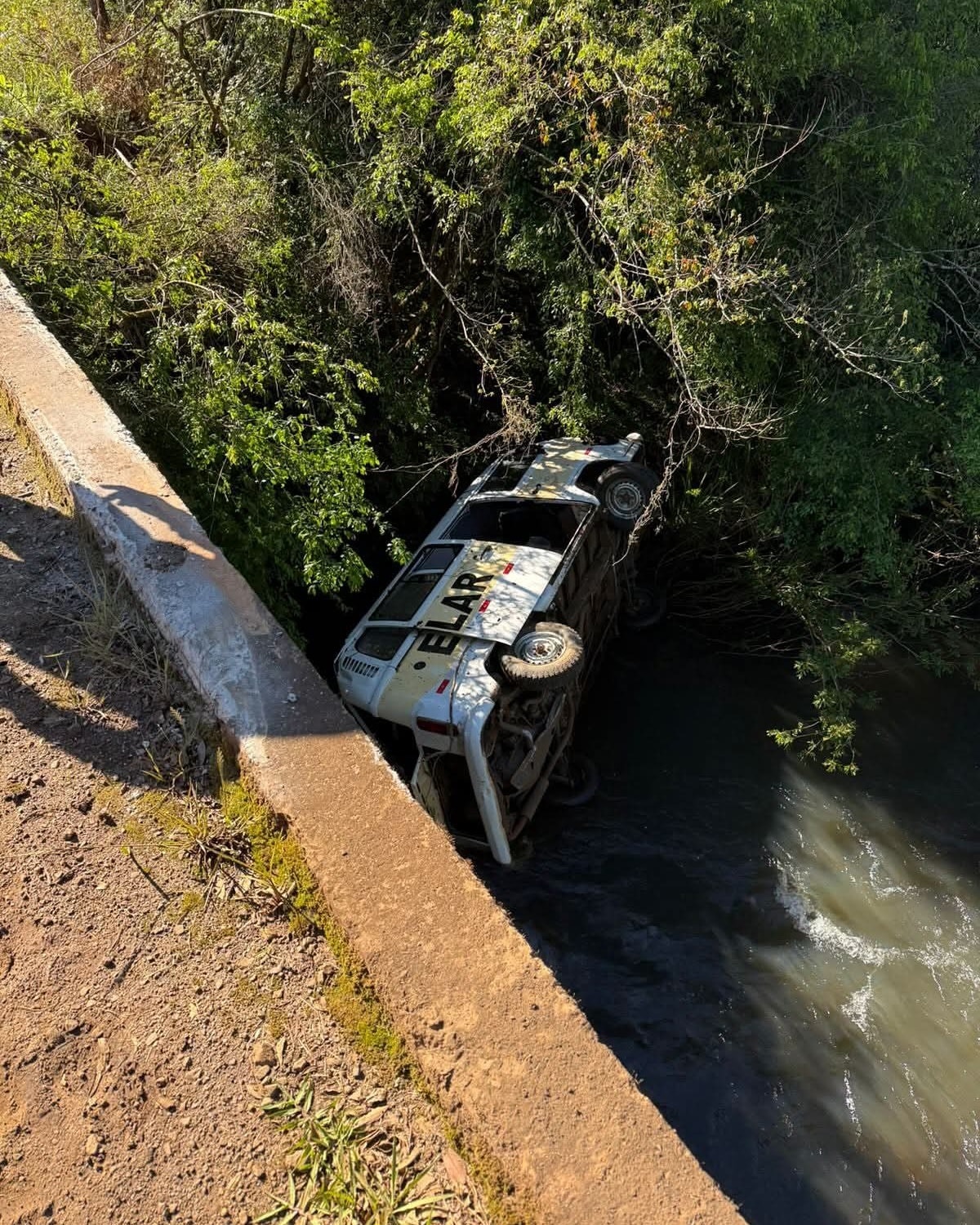 De acordo com o Corpo de Bombeiros, no veículo estavam o motorista, de 66 anos, outro homem, uma gestante de oito semanas e as nove crianças que seguiam para a escola. O veículo teria saído da pista e despencado de uma ponte, caindo no Rio Correntes.