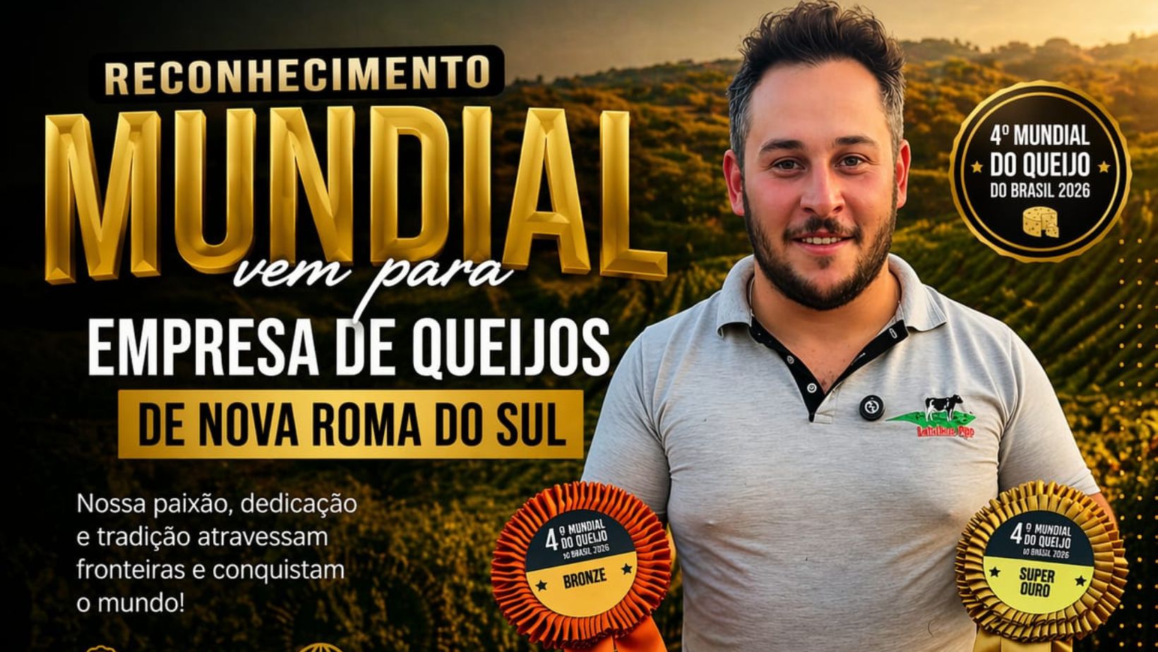 Uma grande conquista internacional agora tem sabor e origem em Nova Roma do Sul. A Laticínios Pipo brilhou no Mundial do Queijo do Brasil, realizado em São Paulo, entre os dias 16 e 19 de abril, levando importantes premiações e colocando a região em destaque no cenário mundial.
