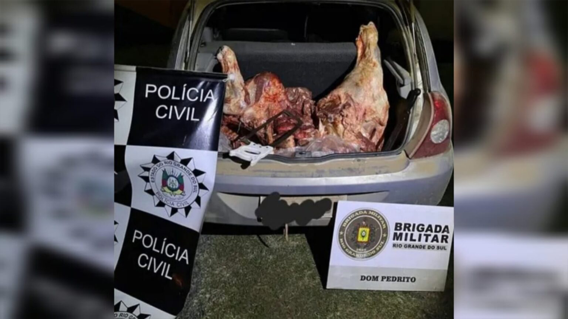 De acordo com a Polícia Civil, o trio foi localizado em um carro na localidade de Leões, no interior do município. Dentro, estava a carcaça de um animal que havia sido furtado e abatido.